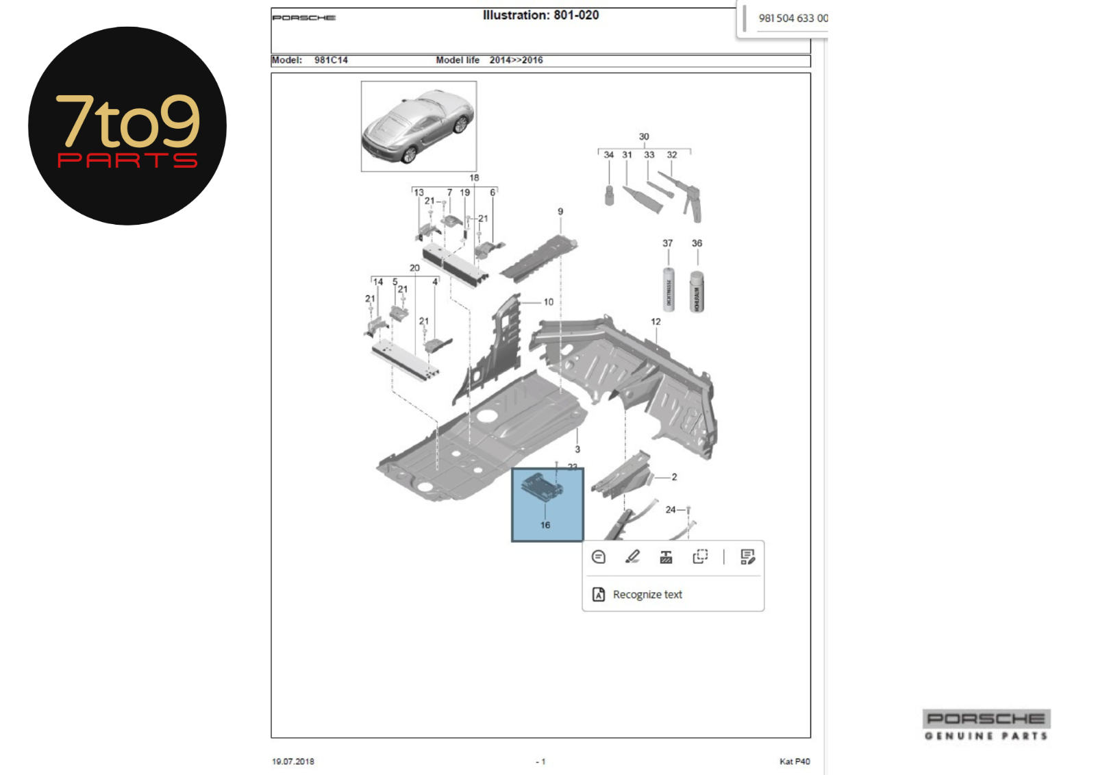 Parted from 2015 981 Cayman S, VIN