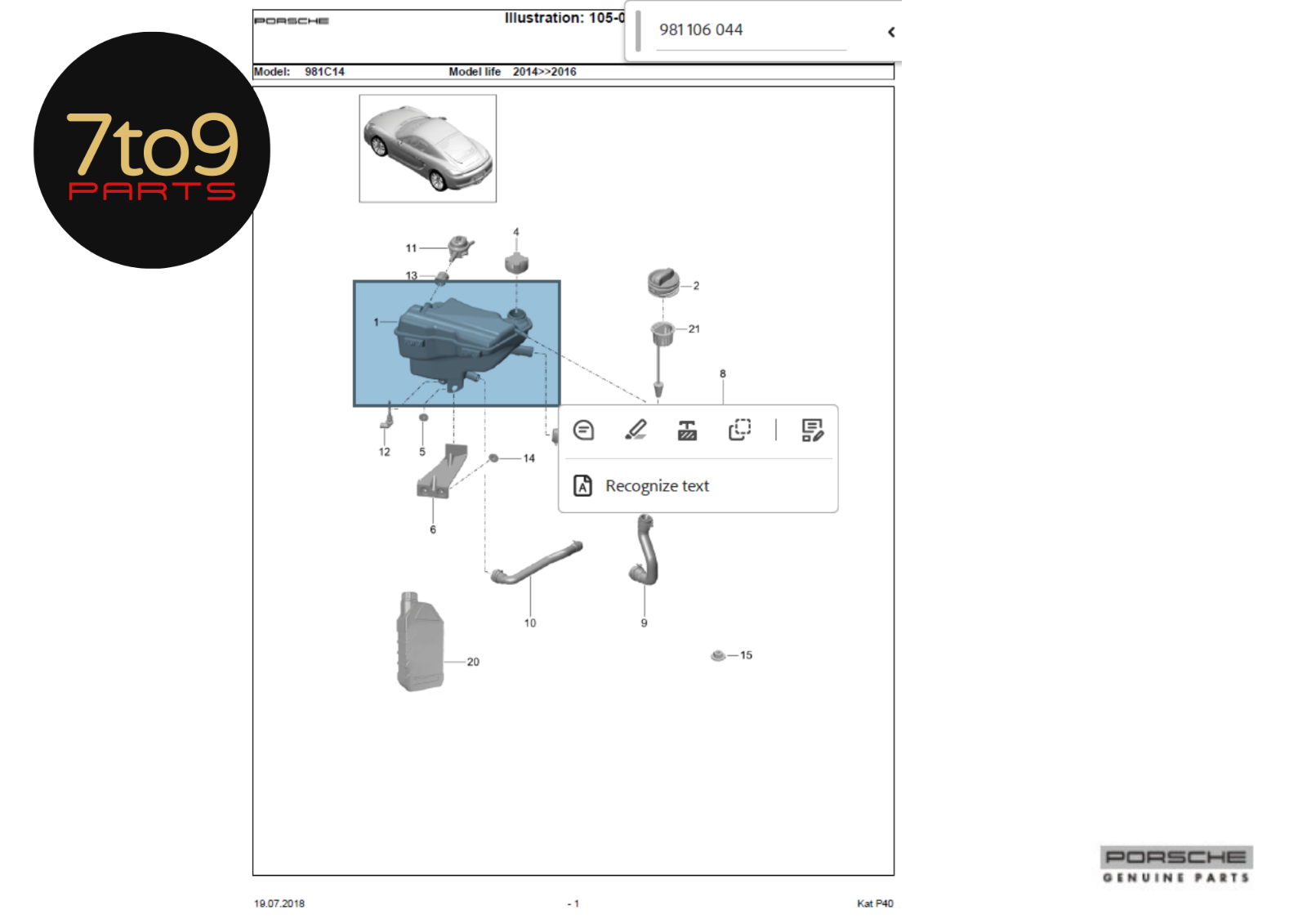 Porsche Genuine Boxster/Cayman 981 Coolant Overflow Expansion Tank,.