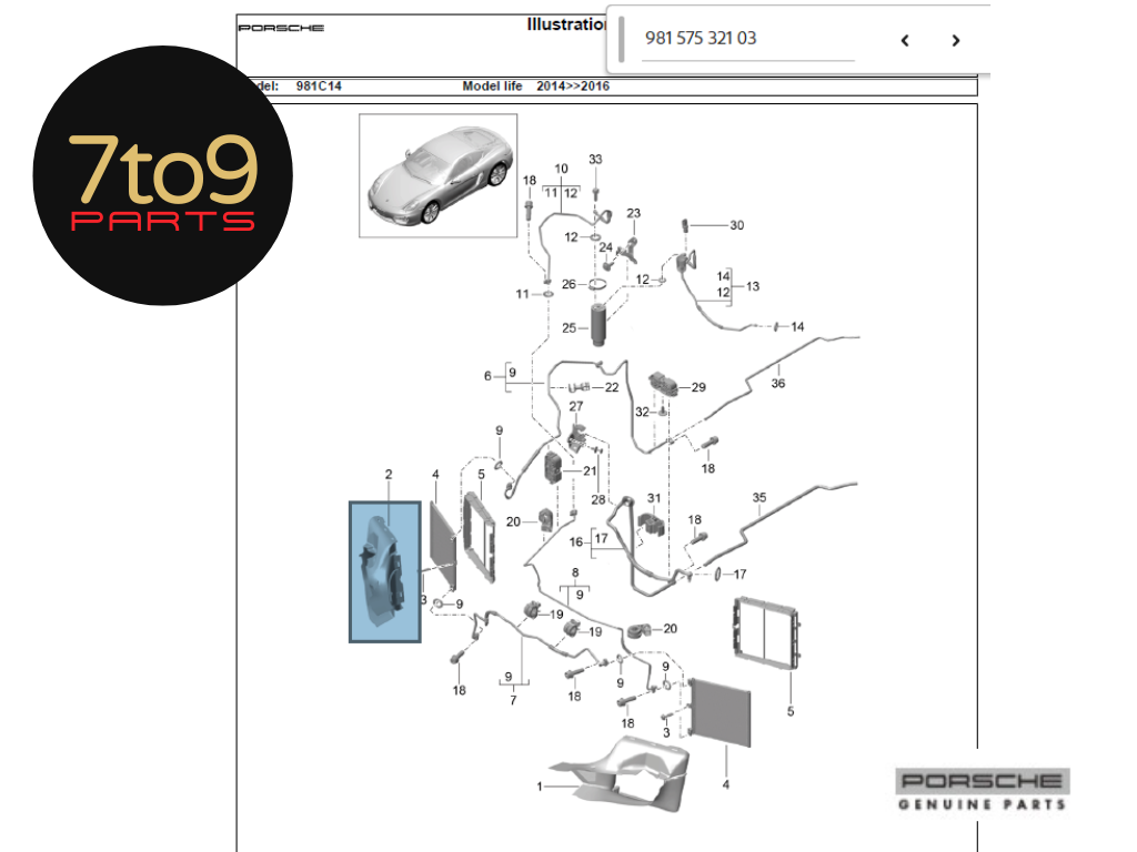 Porsche Cayman 981 Front Radiator Air Guide LHS - 981 575 321 03