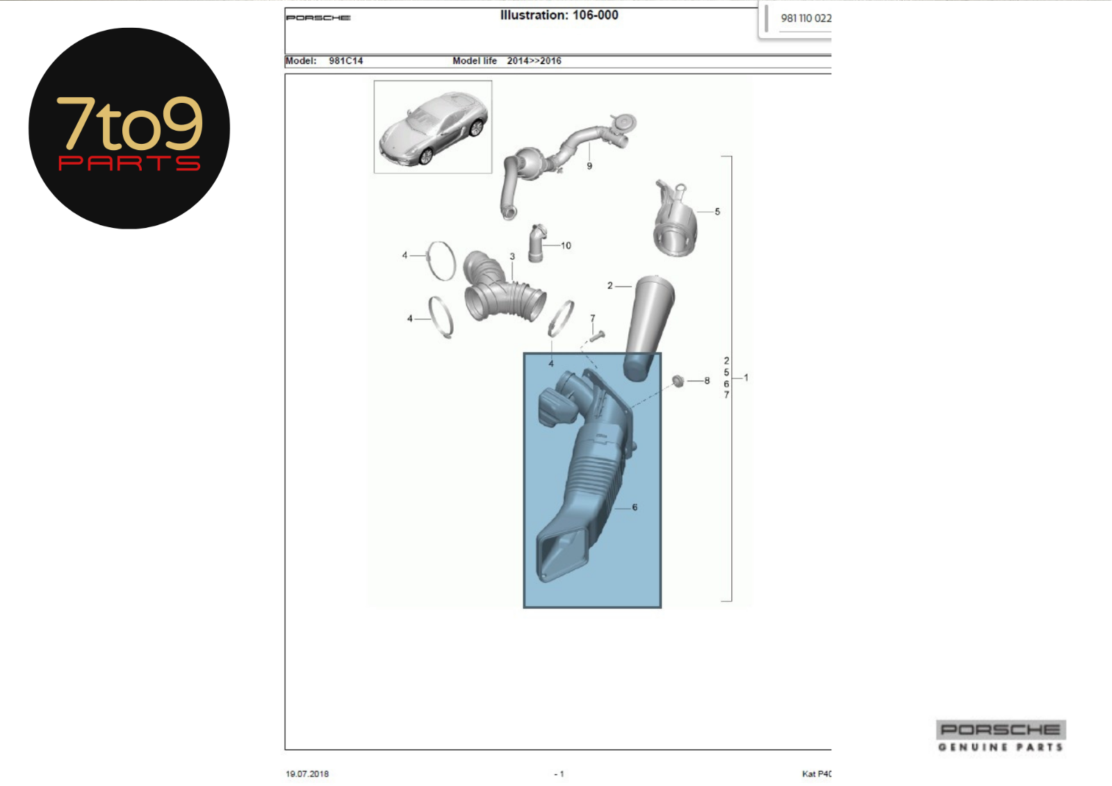 Porsche Boxster/Cayman S 981 (2015) Air Intake Filter Duct, right-hand side (RHS).