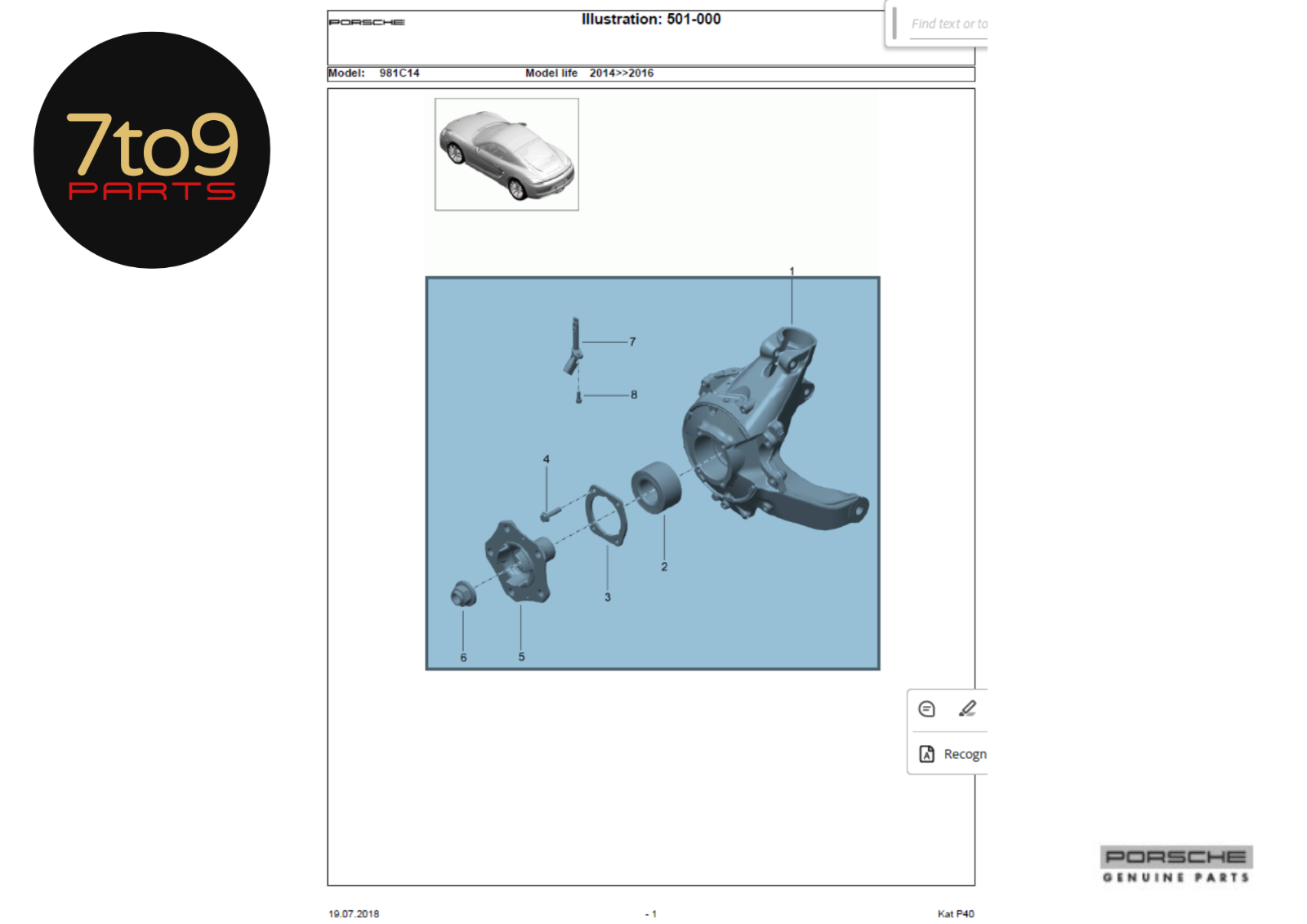 Porsche Cayman S 981 2015 Rear Wheel Hub Knuckle RHS - 981 331 658 07