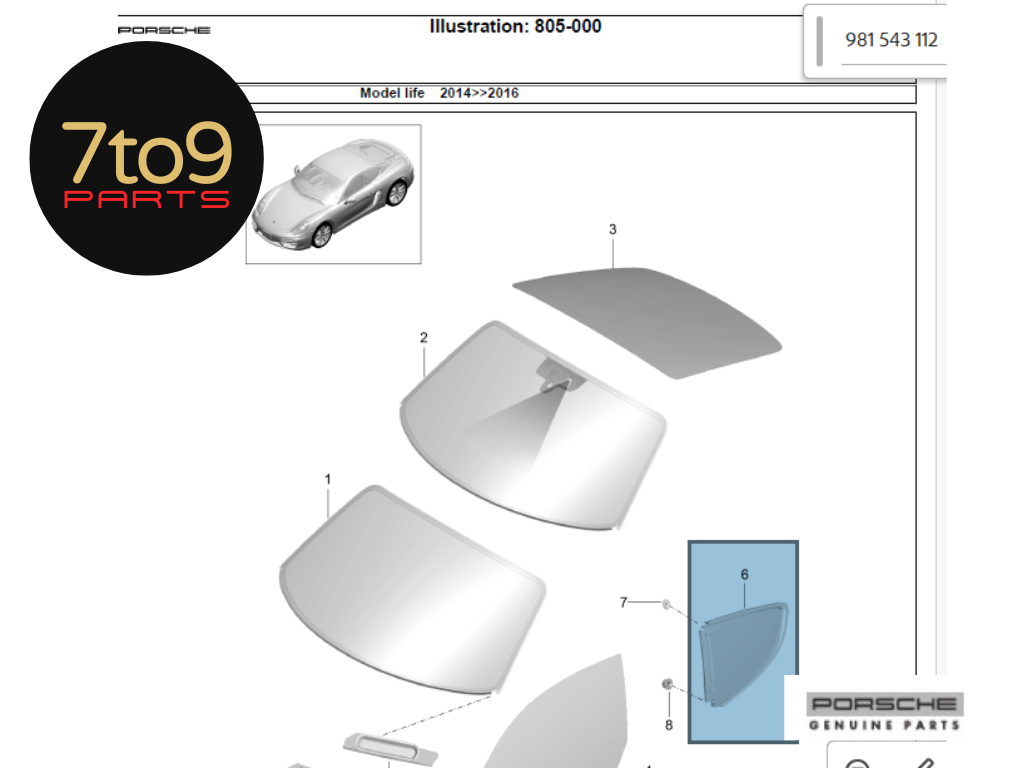 Porsche Cayman 981 Side Quarter Window Assembly RHS - 981 543 112 - Tinted