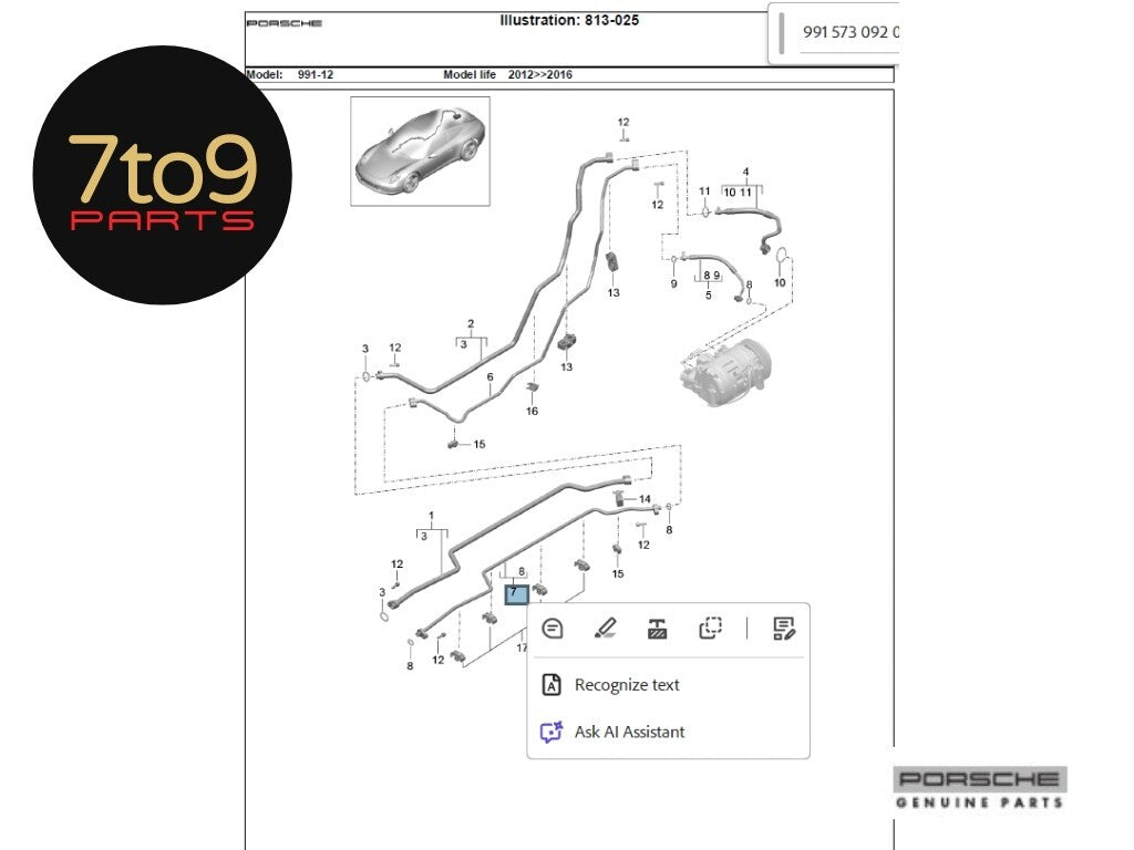 Porsche Cayman Boxster 981 911 991 Air Con Pipeline
