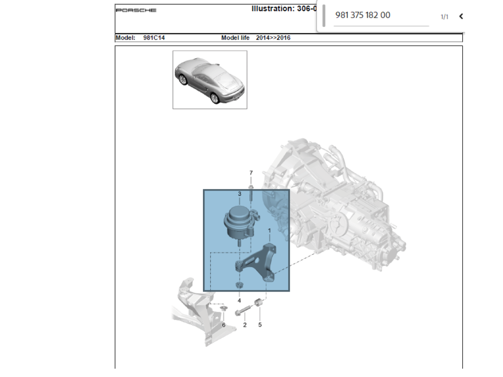 Porsche Cayman Boxster 981 Gearbox G81 Hydro Mount and Hanger RHS - 981 375 049 02