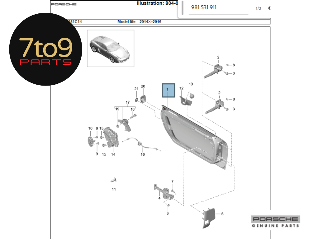 Porsche Boxster Cayman 981 GT4 Complete Right Door, in very good condition, minor dints/scratches, parted from 981 Cayman S donor.