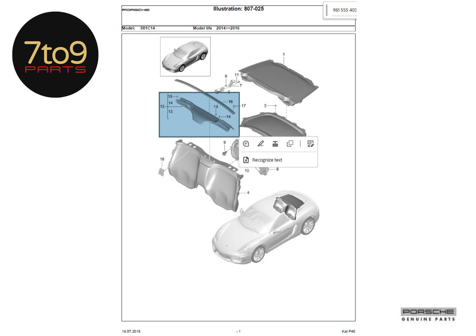 Porsche Cayman S 981 2015 Interior Rear Trim Panel