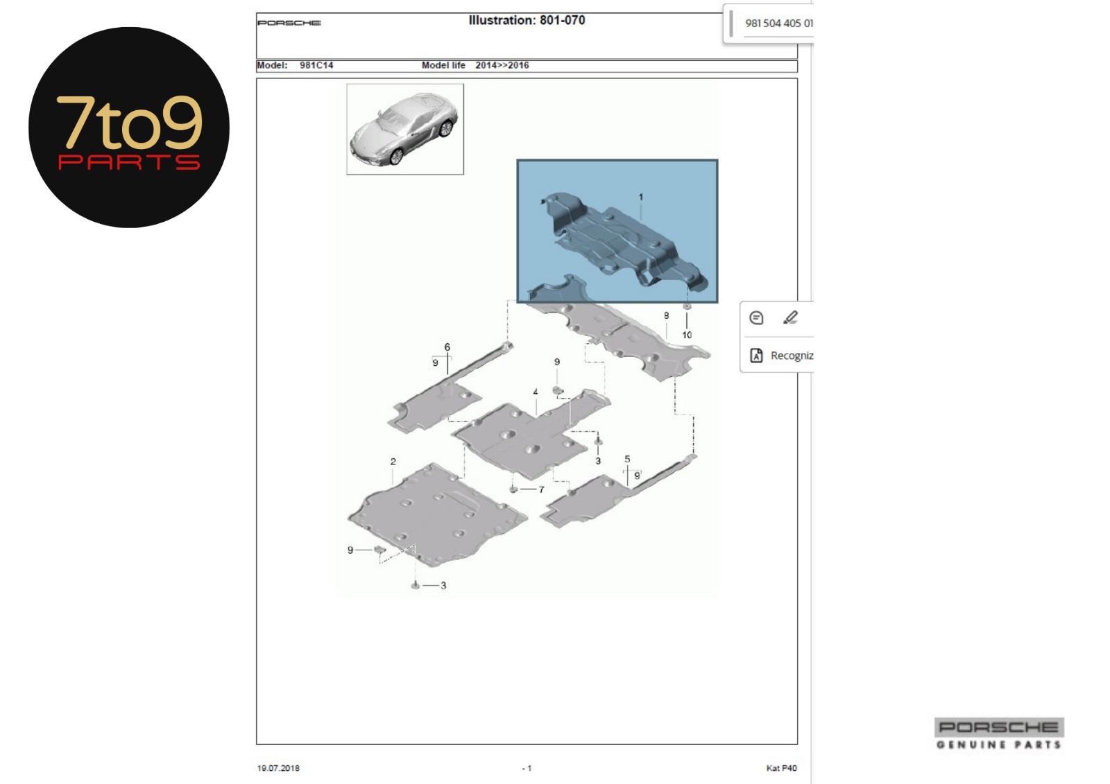 Porsche Boxster/Cayman S 981 Rear Exhaust Heat Shield Panel.